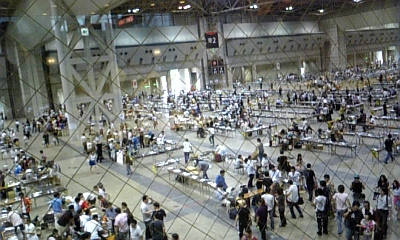 ↑うどん店から見た2日目終了後のコミケ会場。皆片付けが早くて早くも閑散とし始めてる。